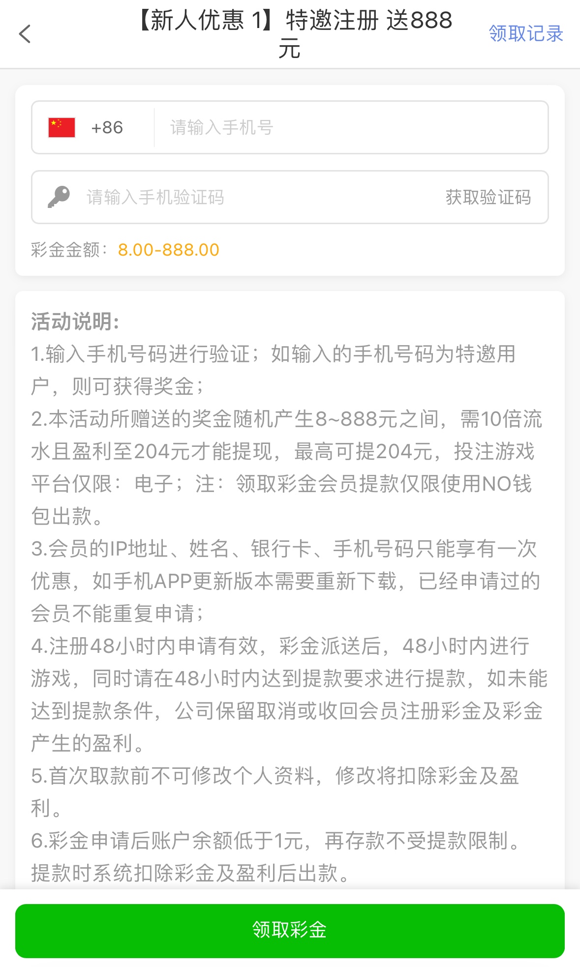 注册完善信息优惠里自助领取,10倍流水,盈利满204才能提现,仅限电子,仅限NO钱包提现