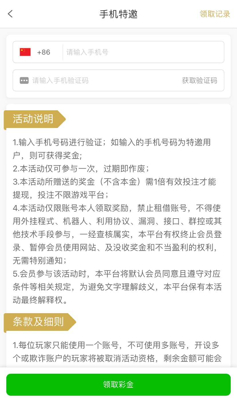 注册好优惠里自助领取彩金