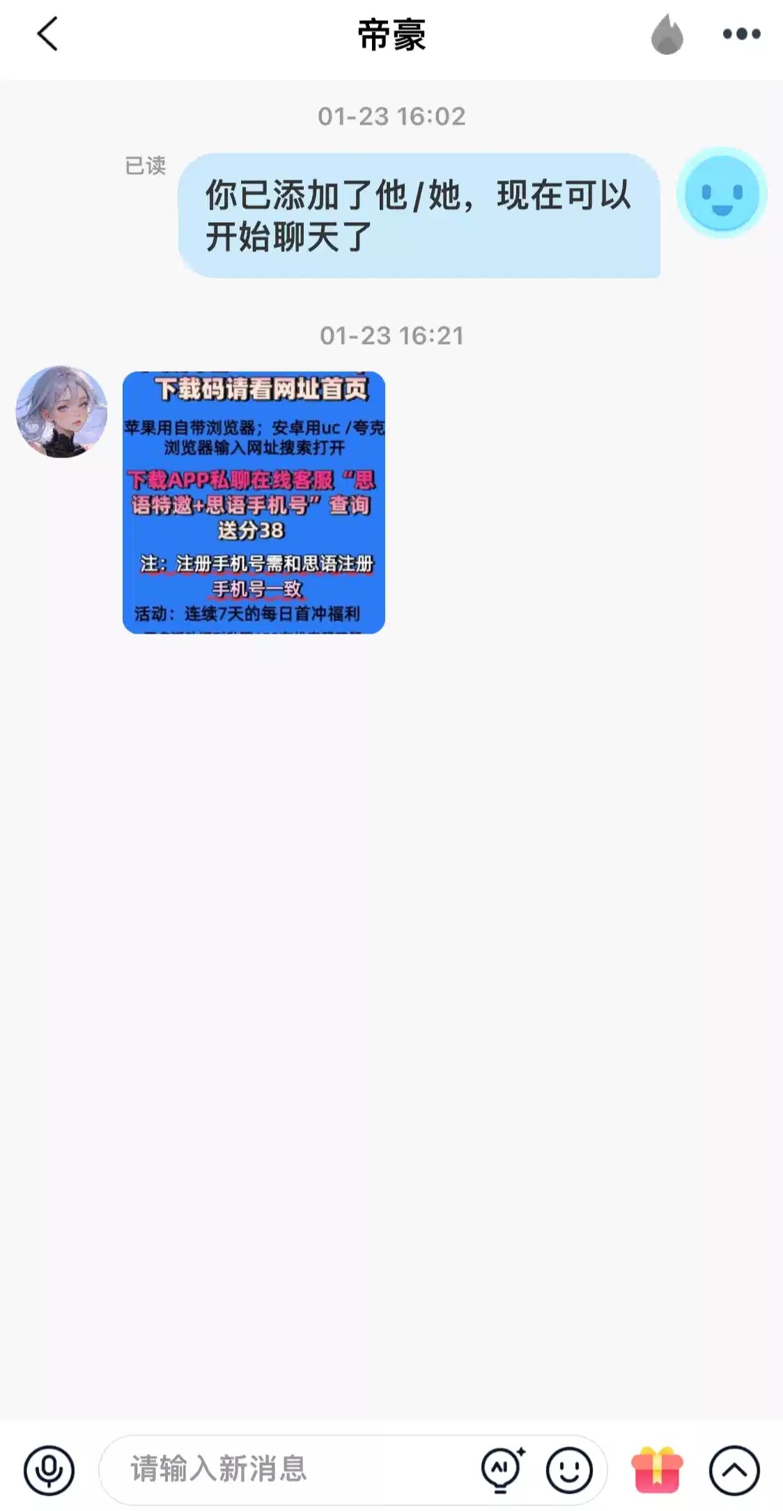 有思语号的兄弟可以登入上去看一下有没有人给你发信息或添加你